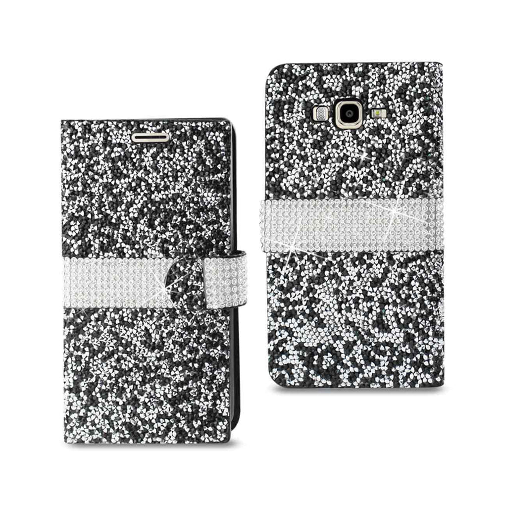 REIKO SAMSUNG GALAXY J7 FLEXIBLE 3D RHOMBUS PATTERN TPU CASE WITH SHINY FRAME IN BLACK