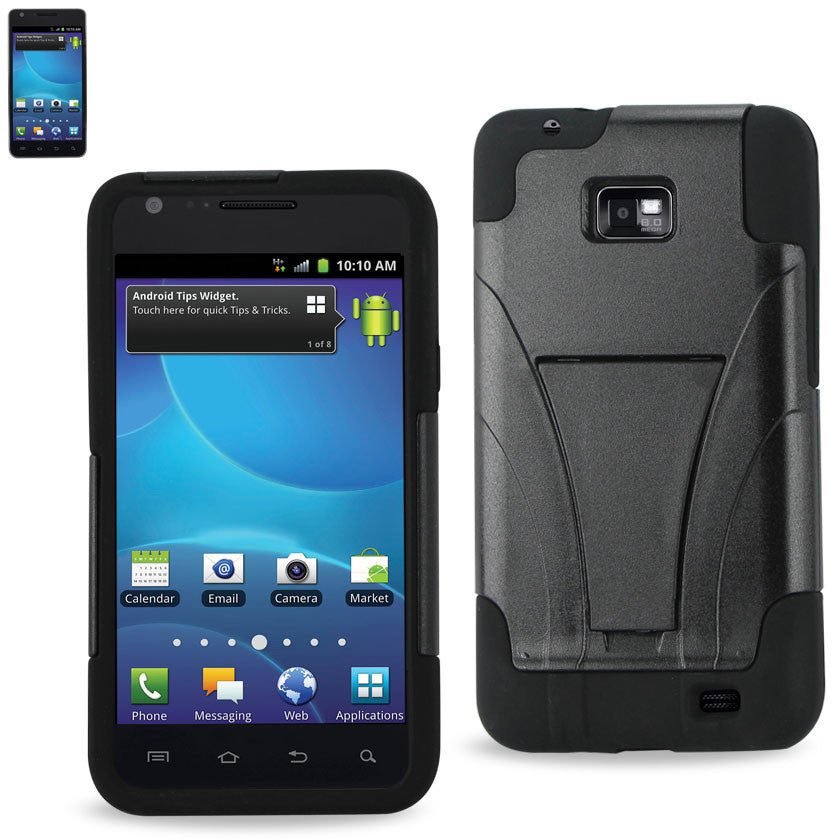 REIKO SAMSUNG GALAXY S2 HYBRID HEAVY DUTY CASE WITH KICKSTAND IN BLACK