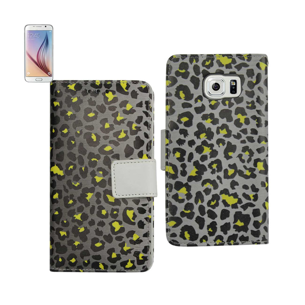 REIKO SAMSUNG GALAXY S6 3-IN-1 ANIMAL LEOPARD PRINT WALLET CASE IN SILVER