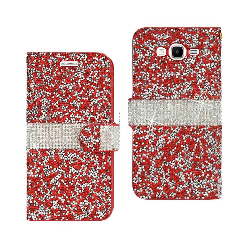 REIKO SAMSUNG GALAXY GRAND PRIME JEWELRY RHINESTONE WALLET CASE IN RED