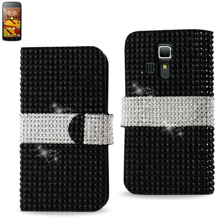 REIKO KYOCERA HYDRO ICON JEWELRY DIAMOND RHINESTONE WALLET CASE IN BLACK