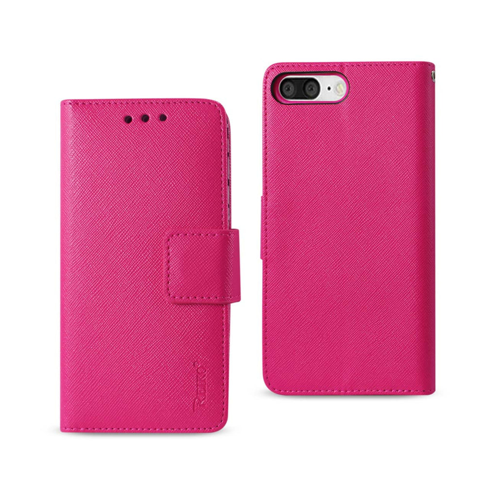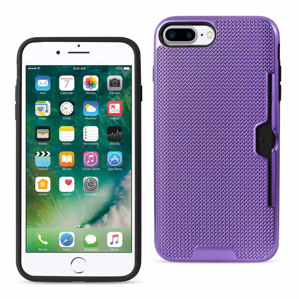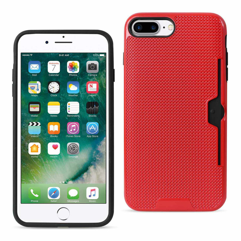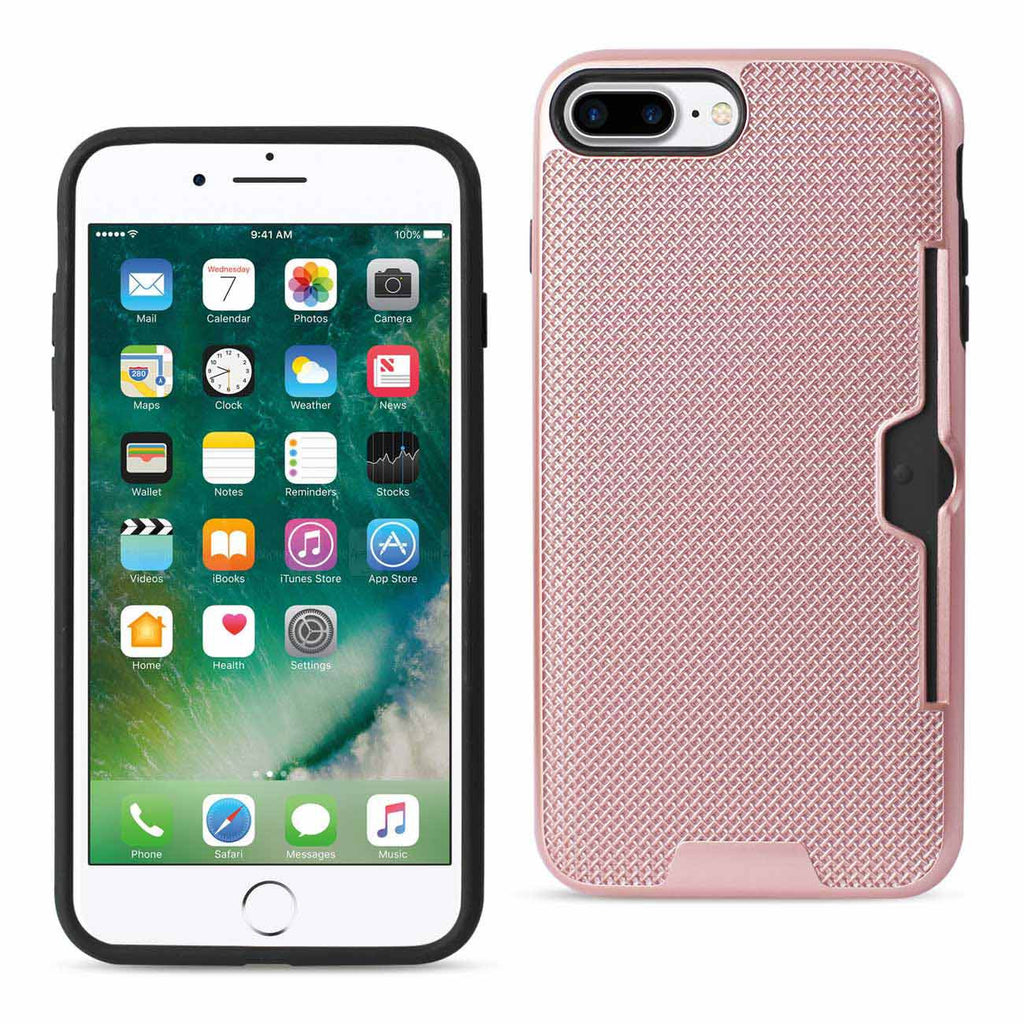 REIKO IPHONE 7 PLUS SLIM MESH SURFACE ARMOR HYBRID CASE WITH CARD HOLDER IN HOT PINK