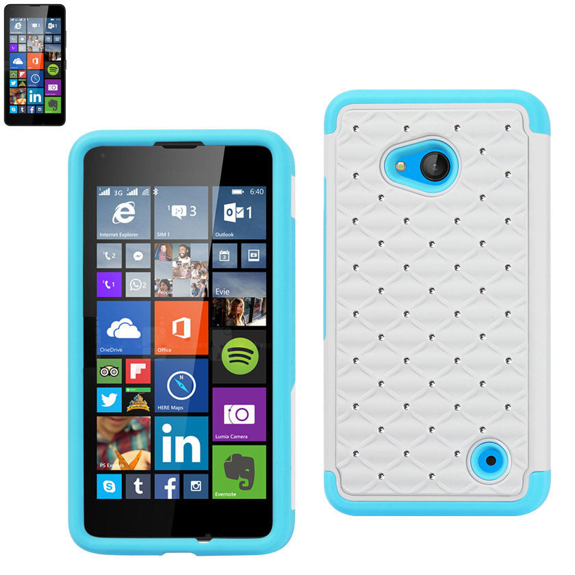 REIKO NOKIA LUMIA 640 HYBRID HEAVY DUTY JEWELRY DIAMOND CASE IN BLUE WHITE
