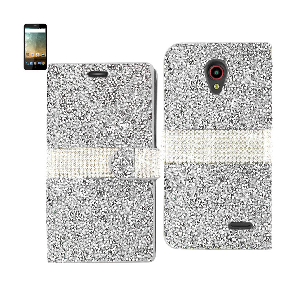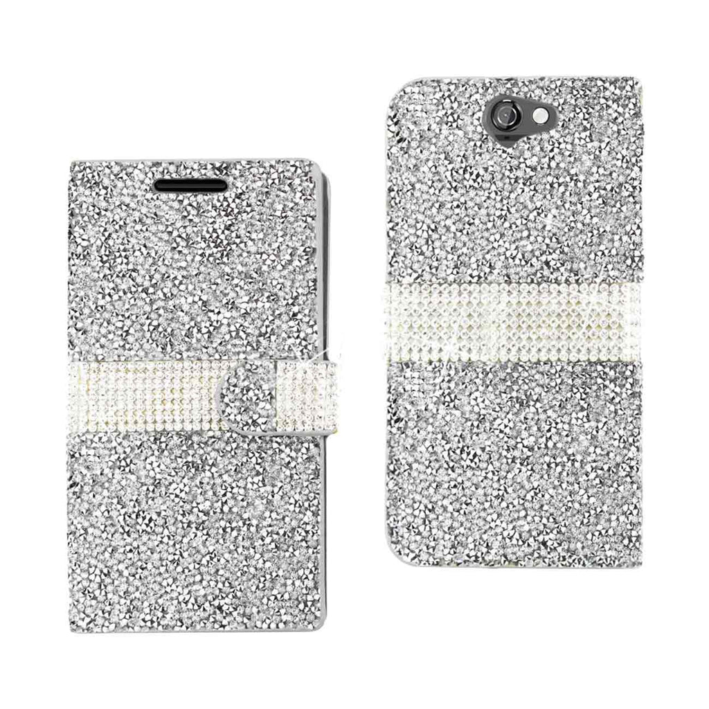 REIKO HTC ONE A9 JEWELRY RHINESTONE WALLET CASE IN RED