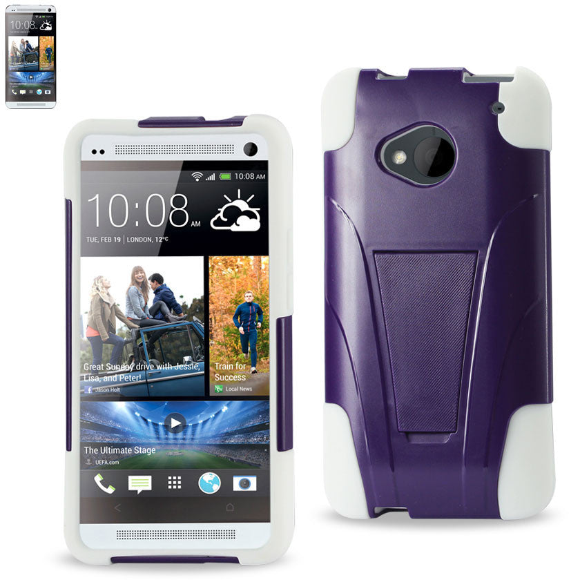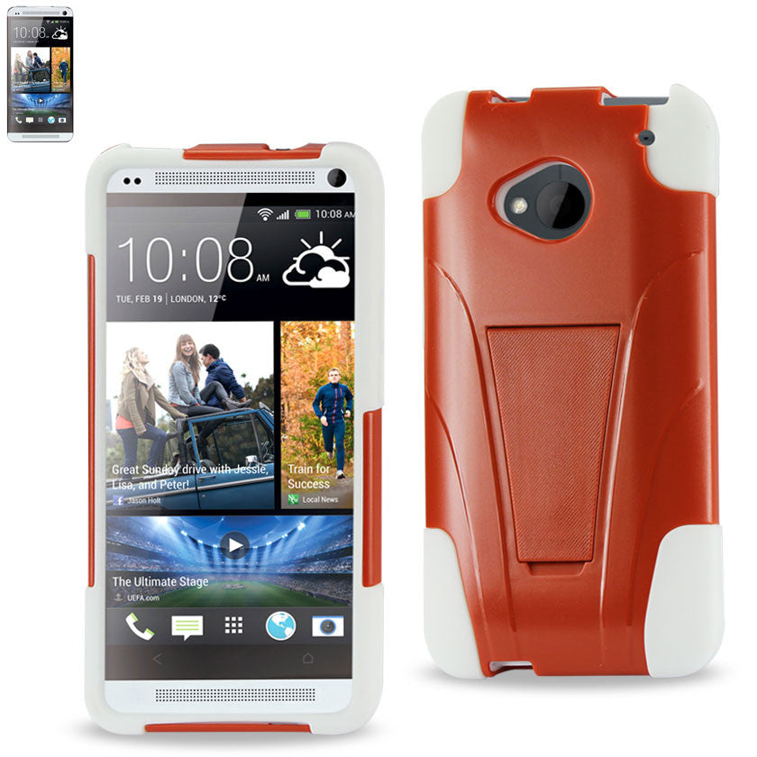 REIKO HTC ONE M7 HYBRID HEAVY DUTY CASE WITH KICKSTAND IN ORANGE WHITE