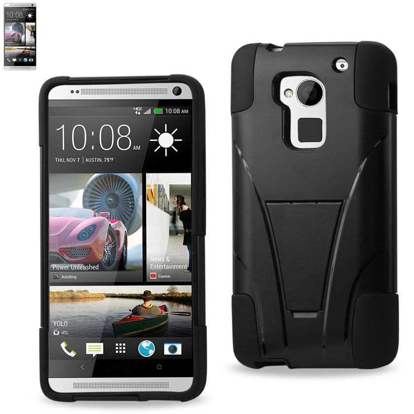REIKO HTC ONE MAX HYBRID HEAVY DUTY CASE WITH KICKSTAND IN BLACK