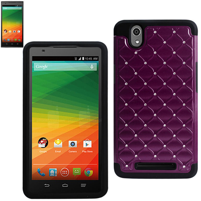 REIKO ZTE ZMAX HYBRID HEAVY DUTY JEWELRY DIAMOND CASE IN BLACK PURPLE
