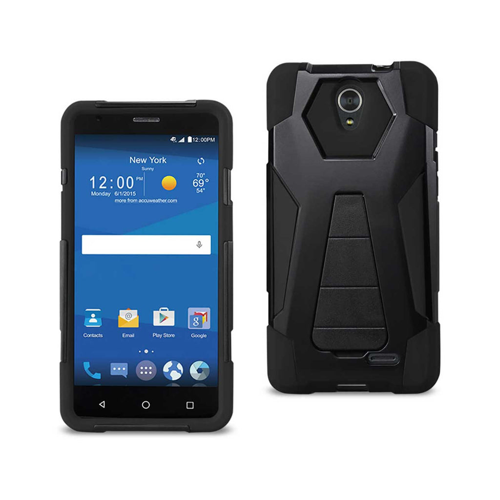 REIKO ZTE CHAPEL HYBRID HEAVY DUTY CASE WITH KICKSTAND IN BLACK