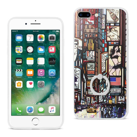 IPHONE 7 PLUS TIME SQUARE STREETSCAPE DESIGN CASE WITH 360 DEGREE ROTATING RING STAND HOLDER