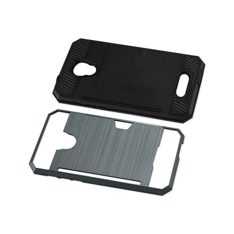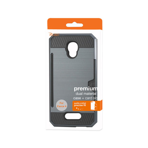 Dual layer hybrid with card holder. Slim armor case can fit almost anywhere. Made with open slot on the back of the case to store personal card. easy to slide In and out of pocket. Well cutout for buttons and audio plug great protection. This phone model is also known as Alcatel Fierce 4.