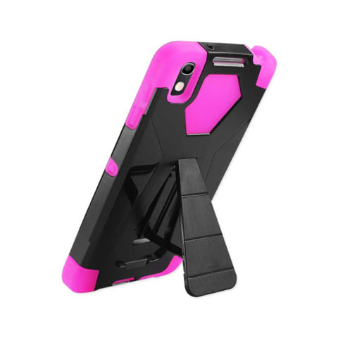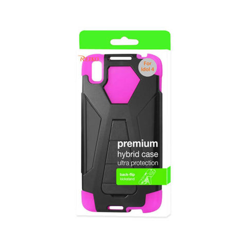 REIKO ALCATEL IDOL 4 HYBRID HEAVY DUTY CASE WITH KICKSTAND IN HOT PINK BLACK