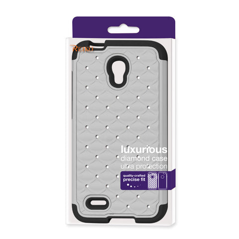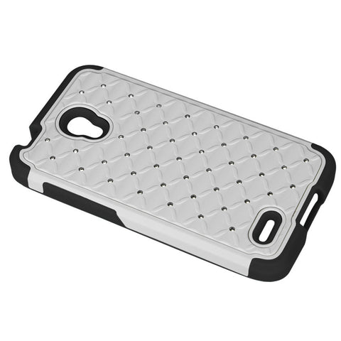 REIKO ALCATEL ONE TOUCH CONQUEST HYBRID HEAVY DUTY JEWELRY DIAMOND CASE IN BLACK WHITE