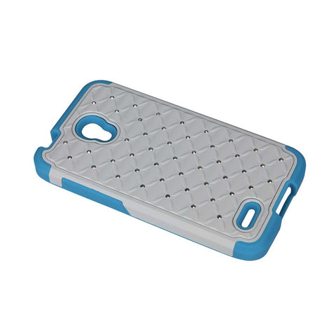 REIKO ALCATEL ONE TOUCH CONQUEST HYBRID HEAVY DUTY JEWELRY DIAMOND CASE IN BLUE WHITE