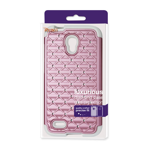 REIKO ALCATEL ONE TOUCH CONQUEST HYBRID HEAVY DUTY JEWELRY DIAMOND CASE IN WHITE PINK
