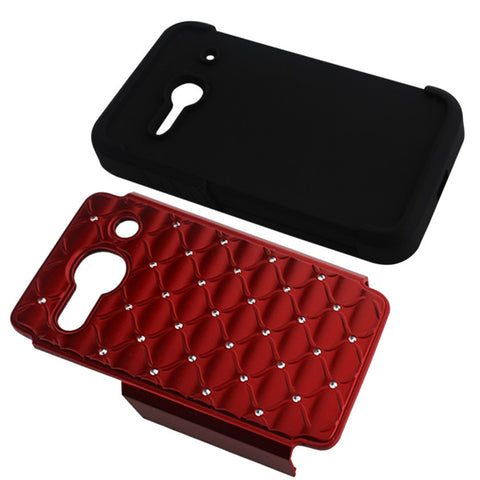 REIKO ALCATEL ONE TOUCH EVOLVE 2 HYBRID HEAVY DUTY JEWELRY DIAMOND CASE IN BLACK RED