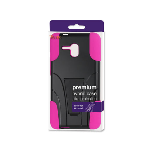 Constructed from impact-resistant material and double-enforced with a shock absorbing silicone inner-sleeve. Built In vertical kickstand. Heavy duty design with front raised edges to protect your mobile device and touchscreen. Protects your phone under extreme conditions and a host of other environmental factors great dropproof and shockpoorf protection. This phone model is also known as Alcatel OneTouch Fierce XL 5.5''.