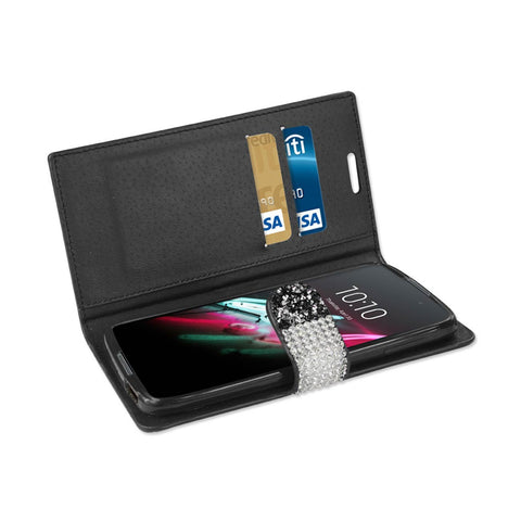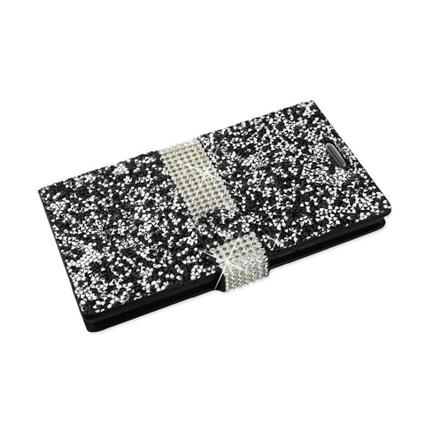 REIKO ALCATEL ONE TOUCH IDOL 3 5.5 JEWELRY RHINESTONE WALLET CASE IN BLACK