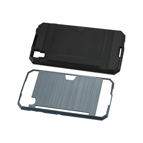 Dual layer hybrid with card holder. Slim armor case can fit almost anywhere. Made with open slot on the back of the case to store personal card. easy to slide In and out of pocket. Well cutout for buttons and audio plug great protection.