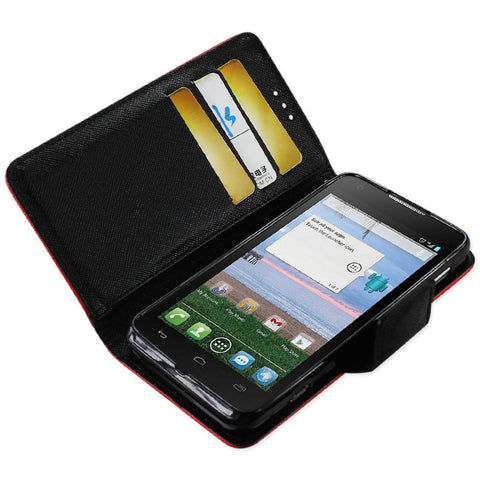 Three side pockets for credit cards, business cards and other daily "must-have" items. The free stand function makes you watch videos or pictures In an easy way. Secure magnetic flap to keep case closed and your phone scratch-free. Able to fit In pouches, bags or any other small pocket spaces. Quality-crafted for precise fit and easy operation. Made with synthetic leather exterior with a soft, microfiber interior for drop and shock protection. Complete and stylish protection with full access to all ports, buttons, and camera. This phone model is also known as Alcatel OneTouch Sonic LTE A851L.
