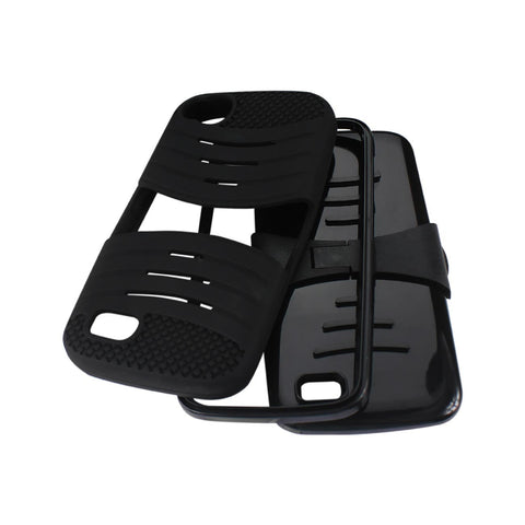 Constructed from impact-resistant material and double-enforced with a shock absorbing silicone inner-sleeve. Built In horizontal kickstand. Heavy duty design with front raised edges to protect your mobile device and touchscreen. Anti-shock and anti-slip grip design. Protects your phone under extreme conditions and a host of other environmental factors great dropproof and shockpoorf protection. This phone model is also known as Blu Life Play L100A.