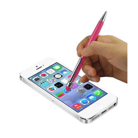 Luxurious crystal design. Features an ink pen to quickly jot down notes on paper, simply twist pen barrel and instantly you have access to a pen. Durable silicone rubber tip works with all touch screen tablets and Smartphones. Retractable pen tip design to protect the pen as well as your pocket. Works with popular writing and drawing applications. Great accessory for all your touch screen mobile devices. No writing noise, Purple marks or harm to screen.