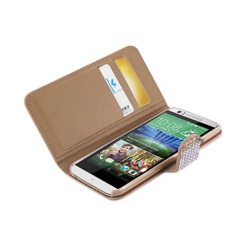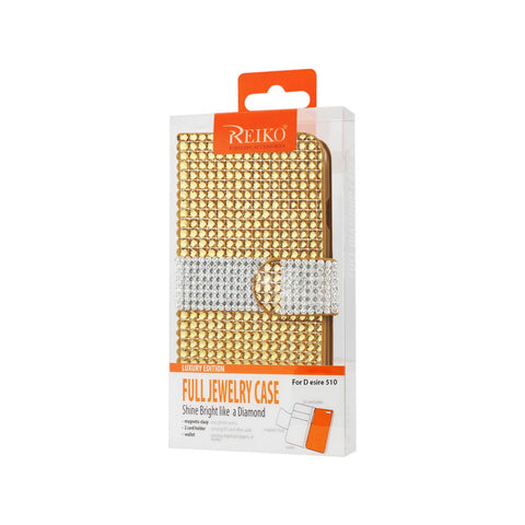 REIKO HTC DESIRE 510 JEWELRY DIAMOND RHINESTONE WALLET CASE IN GOLD