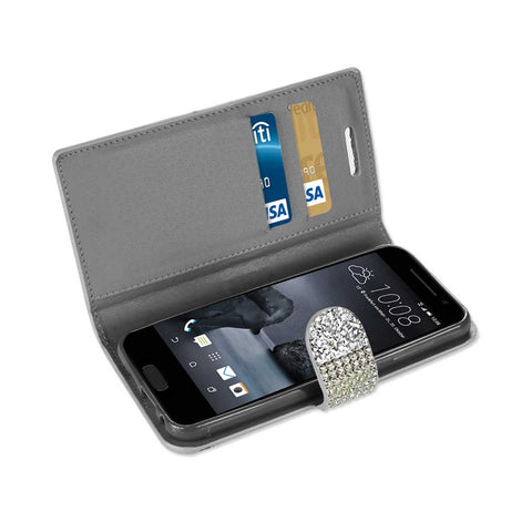 REIKO HTC ONE A9 JEWELRY RHINESTONE WALLET CASE IN SILVER