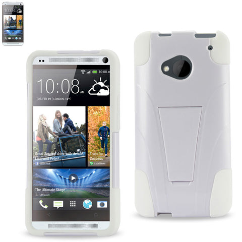REIKO HTC ONE M7 HYBRID HEAVY DUTY CASE WITH KICKSTAND IN WHITE
