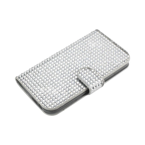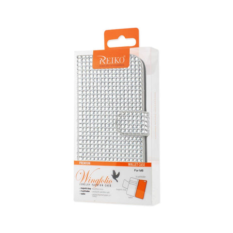 REIKO HTC ONE M8 JEWELRY DIAMOND RHINESTONE WALLET CASE IN SILVER