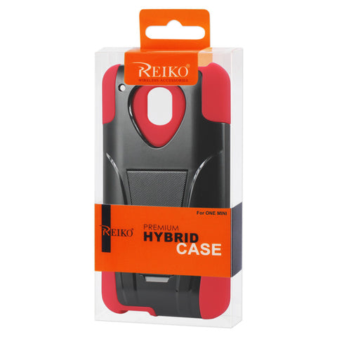 REIKO HTC ONE MINI M4 HYBRID HEAVY DUTY CASE WITH KICKSTAND IN RED BLACK