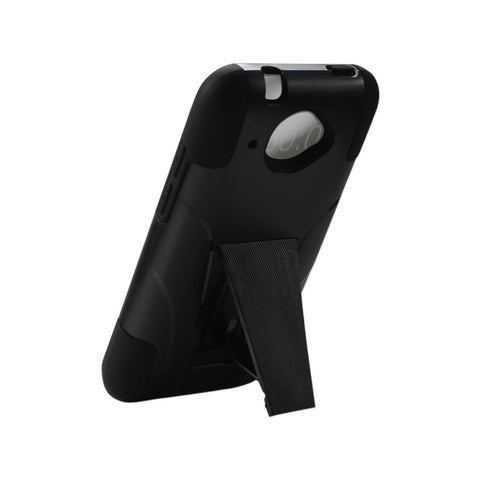 Constructed from impact-resistant material and double-enforced with a shock absorbing silicone inner-sleeve. Built In vertical kickstand. Heavy duty design with front raised edges to protect your mobile device and touchscreen. Protects your phone under extreme conditions and a host of other environmental factors great dropproof and shockpoorf protection. This phone model is also known as HTC Zara/ HTC Desire 601.