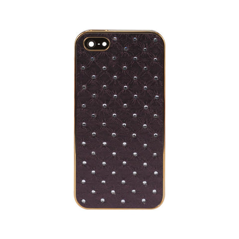 Beautiful diamonds studs case with synthetic leather back cover. Made with two parts, raised edges to protect your mobile device and touchscreen. Helps protect your phone from objects on your pocket and purse with its silver metal plated edges. Made to slide In and out the pocket, without attracting lint or other unwanted particles. Quality-crafted for precise fit and easy operation. Helps protect your phone from shock and damage. Precisely engineered to preserve full use of volume buttons, charger, camera, and all other ports.