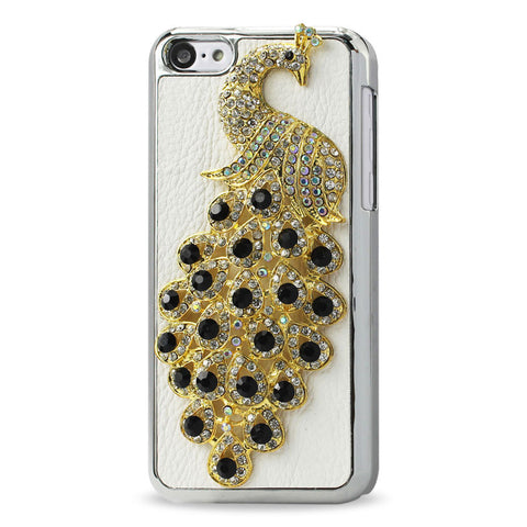 REIKO IPHONE 5C JEWELRY 3D PEACOCK GENUINE LEATHER CASE IN BLACK