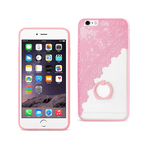 REIKO IPHONE 6 PLUS/ 6S PLUS SEXY LACE TPU CASE WITH ROTATING RING STAND HOLDER IN PINK