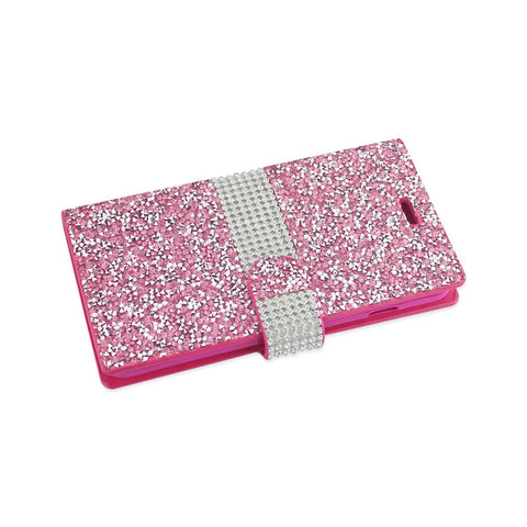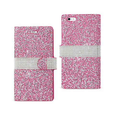 Beautiful jewelry rhinestone wallet case. Built In side pockets for credit cards, business cards and other daily "must-have" items. Secure magnetic flap to keep case closed and your phone scratch-free. Snug fitting holds your phone firmly. Wallet case covers your phone entirely. Well cutout ports for your earbuds or headphones and USB charging cable. Compatible with iPhone 6 Plus/ iPhone 6S Plus.