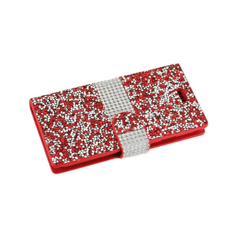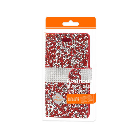 Beautiful jewelry rhinestone wallet case. Built In side pockets for credit cards, business cards and other daily "must-have" items. Secure magnetic flap to keep case closed and your phone scratch-free. Snug fitting holds your phone firmly. Wallet case covers your phone entirely. Well cutout ports for your earbuds or headphones and USB charging cable.