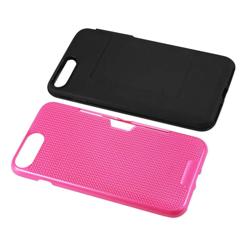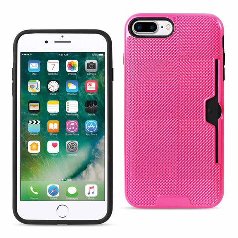 REIKO IPHONE 7 PLUS SLIM MESH SURFACE ARMOR HYBRID CASE WITH CARD HOLDER IN HOT PINK