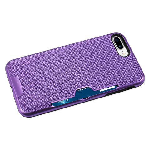 REIKO IPHONE 7 PLUS SLIM MESH SURFACE ARMOR HYBRID CASE WITH CARD HOLDER IN PURPLE