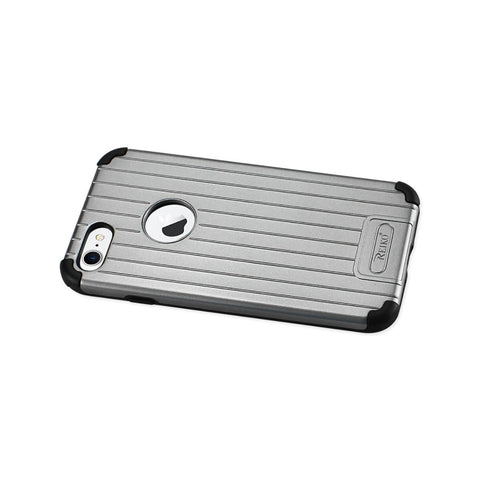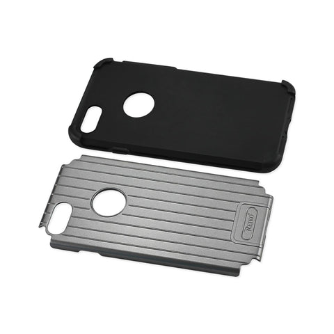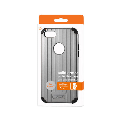 REIKO IPHONE 7 RUGGED METAL TEXTURE HYBRID CASE WITH RIDGED BACK IN BLACK GRAY