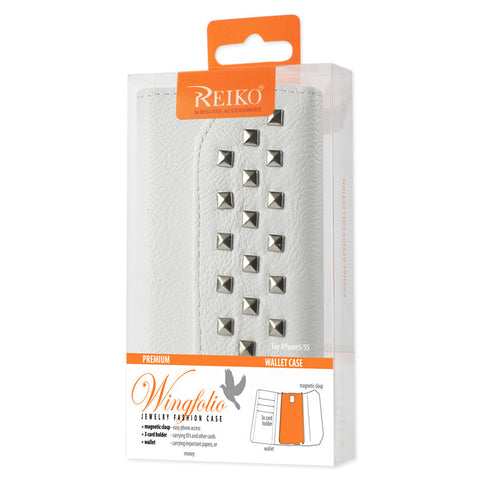 REIKO IPHONE SE/ 5S/ 5 STUDS WALLET CASE IN WHITE