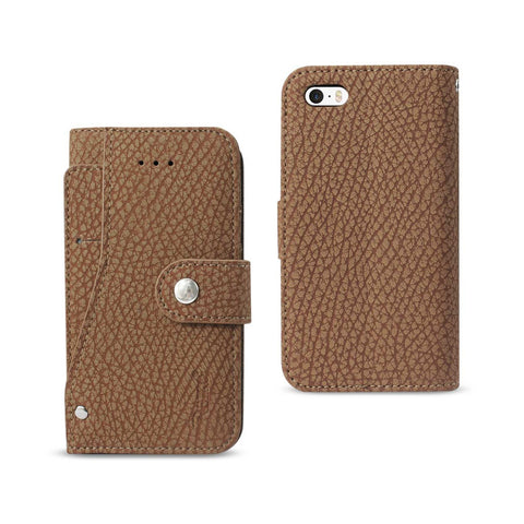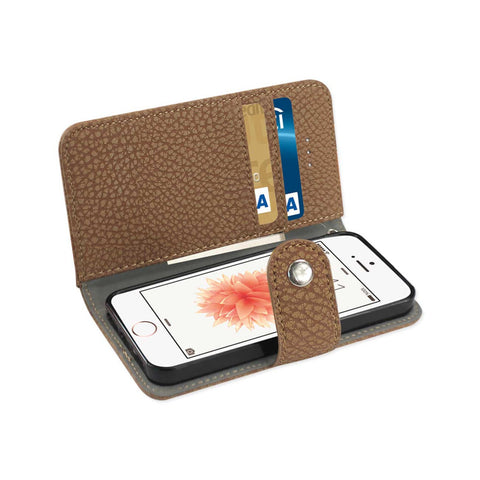 Made of beautiful and durable synthetic leather. Snap button keeps the case closed and your phone secured. Mutiple inside open slots to store your credit cards and money. One exteral slide out pocket to provide additional storage slots. The free stand function makes you watch videos or pictures in an easy way. Complete and stylish protection with full access to all ports, buttons, and camera. Compatitable model with iPhone 5/ iPhone 5S/ iPhone SE.