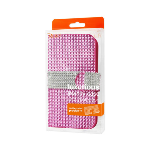 REIKO KYOCERA HYDRO ICON JEWELRY DIAMOND RHINESTONE WALLET CASE IN PINK
