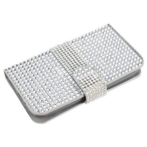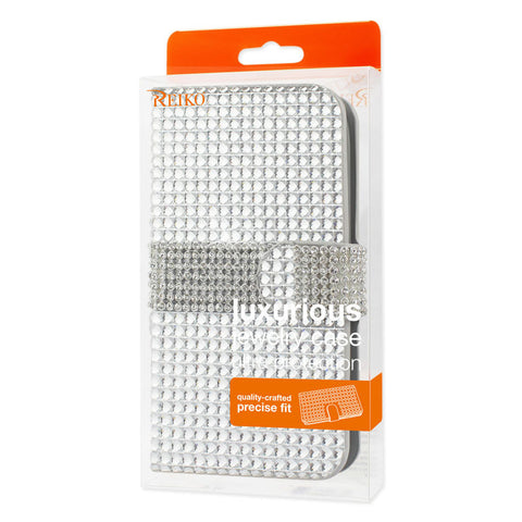 REIKO KYOCERA HYDRO ICON JEWELRY DIAMOND RHINESTONE WALLET CASE IN SILVER