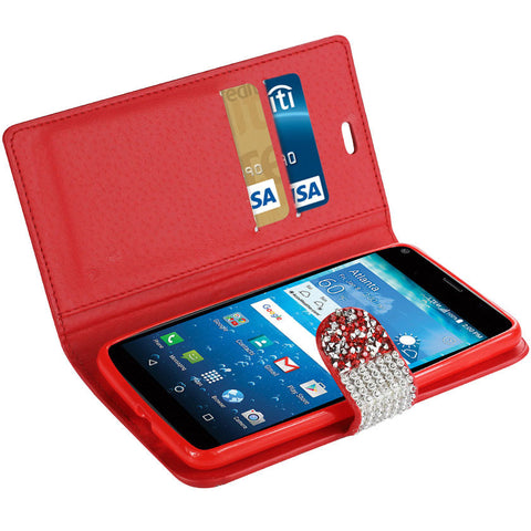 REIKO KYOCERA HYDRO VIEW JEWELRY RHINESTONE WALLET CASE IN RED