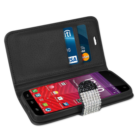 Beautiful full cover diamond wallet case. Built In compartment to store your cash money. Three side pockets for credit cards, business cards and other daily "must-have" items. Secure magnetic flap to keep case closed and your phone scratch-free. This phone model is also known as Kyocera Hydro Wave/ Hydro Air/ C6740.