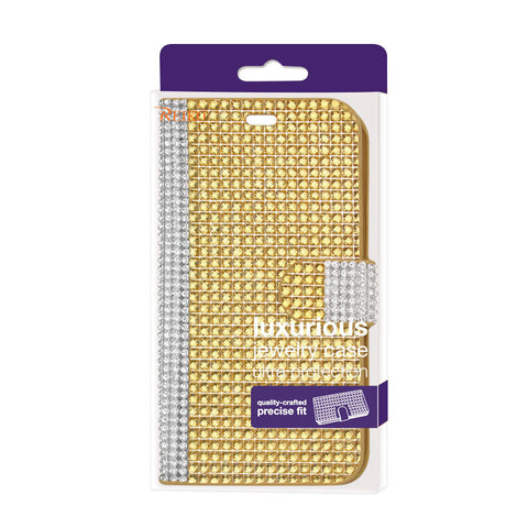 REIKO KYOCERA HYDRO WAVE JEWELRY DIAMOND RHINESTONE WALLET CASE IN GOLD