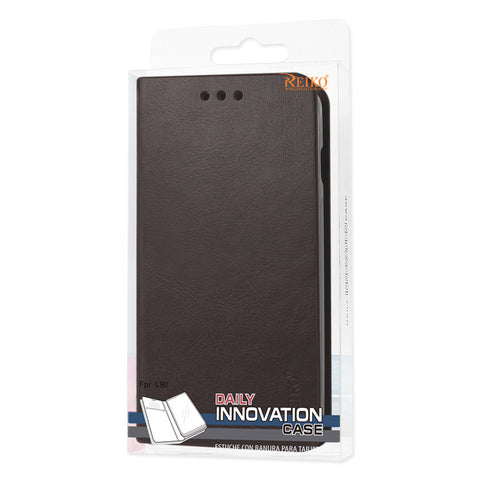 REIKO LG L90 FLIP FOLIO CASE WITH CARD HOLDER IN BROWN