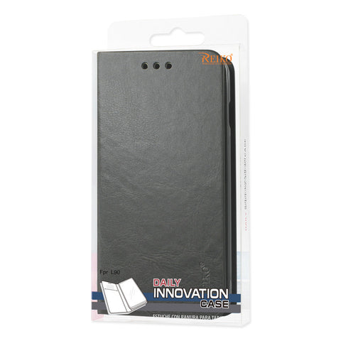 REIKO LG L90 FLIP FOLIO CASE WITH CARD HOLDER IN GRAY