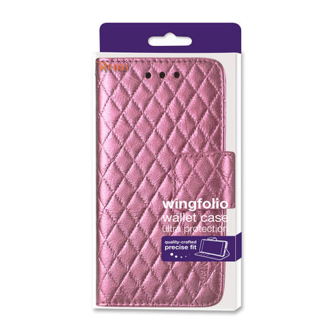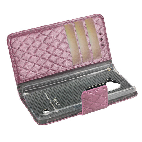 Added rhombus pattern for a seamless luxurious look. Rich synthetic leather exterior with a soft, microfiber interior for drop and shock protection. Three side pockets for credit cards, business cards and other daily "must-have" items. Secure magnetic flap to keep case closed and your phone scratch-free. An opening behind the front cover to store money, and receipts. Quality-crafted for precise fit and easy operation. Complete and stylish protection with full access to all ports, buttons, and camera. This phone model is also known as LG Leon H326T/ LG Risio.
