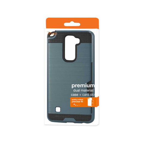 REIKO LG STYLUS 2 SLIM ARMOR HYBRID CASE WITH CARD HOLDER IN NAVY